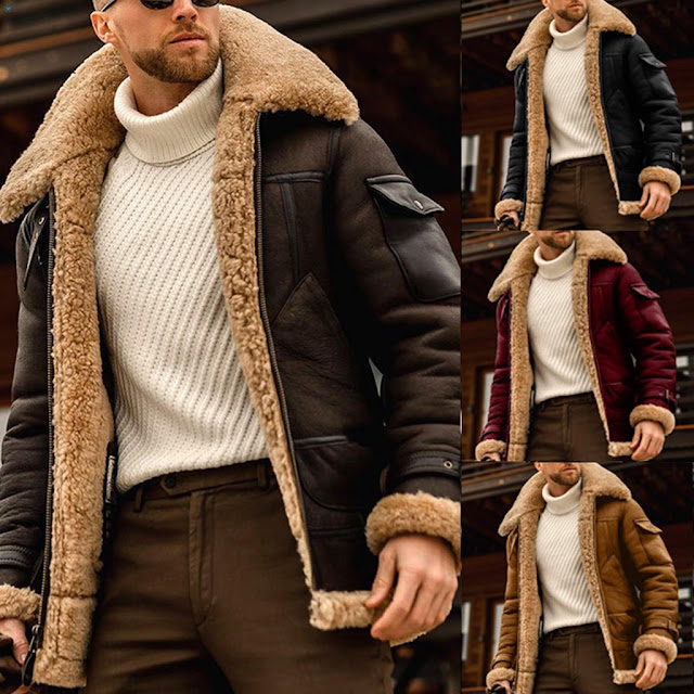 Jaqueta De Couro Retro Para Homens Com Colarinho De Camurça Pele De Moda Única